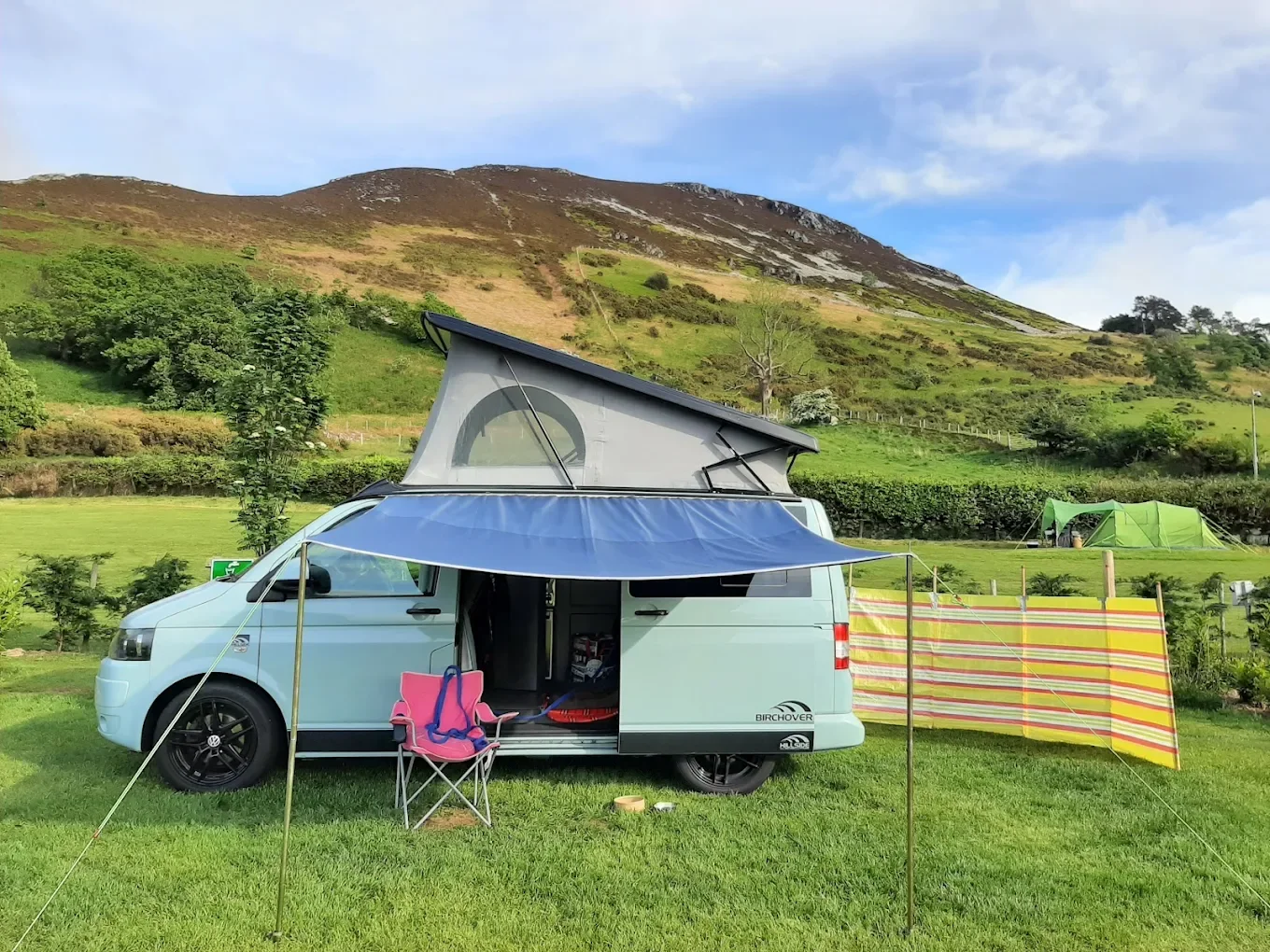 Yes. We have awnings that attach to the side of the campervans. They're easy to attach to the van, but you can detach them too, so when you go out for the day, they remain as a standalone tent and when you get back you just park your campervan next to it and re-attach it.